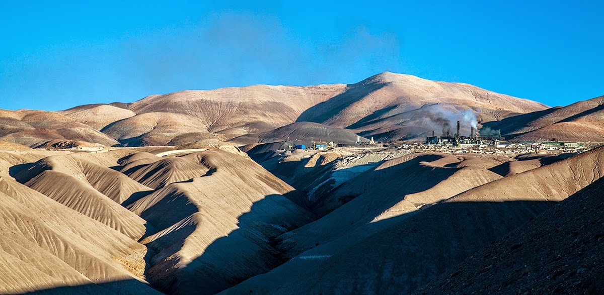 The mill at Porterillos. We weren't sure trains would be running, as the pollution here was so bad that the workers village had to be moved. The trains ran through some pretty spectacular canyons, were easy to chase and had older power. At the end of a canyon the tracks made a u-turn and climbed up an astonishing grade to get to the mill.